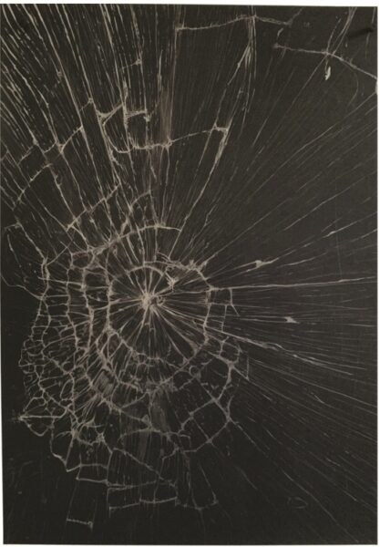 Il était important pour moi, dans cette exposition, que ces échos puissent s’extraire, se déplacer. Je pense que l’idée vient de ces discours selon lesquels une prière, même si elle n’est pas exaucée, est toujours utile. Enfant, je l’imaginais alors flotter dans le monde. C’est ainsi que beaucoup justifient, dans la religion, le rôle des moines : concrètement, ils ne servent plus à grand-chose, mais leurs prières nourriraient le monde. De Cassius Baron, j’ai sélectionné le dessin d’une déchèterie pour mettre en avant sa beauté abandonnée comme peuvent aussi être belles nos prières vaines, devenues donc déchets. Et Lorsque j’ai découvert le travail de Delphine Mazur, je suis tombé sur sa série de dessins « Les fêlures », montrant des cicatrices d’écrans de téléphones portables brisés. Nous sommes encore là dans la thématique du lien avec les autres, avec les proches, et de son altération. Mais c’est surtout l’idée de leur métamorphose qui s’est imposée: de ces fêlures éclosent les fils d’une toile d’araignée, les nervures d’une feuille ou les entailles sur la glace du lac. La destruction dans ses dessins devient ce déplacement tant recherché, celui du vivant, celui de cette nature qui porterait la prière.